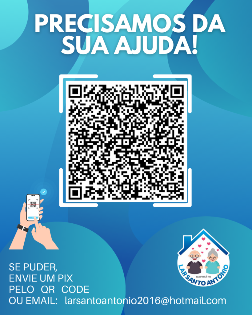 Diante dessa necessidade, o Lar Santo Antônio lançou uma campanha de arrecadação de fundos. A campanha é aberta a todas as pessoas que quiserem ajudar, com qualquer valor. As doações podem ser feitas pelo pix larsantoantonio2016@hotmail.com ou pelo QR Code que está disponível nas páginas oficiais do Lar Santo Antônio de Ivaiporã, no Facebook e Instagram.