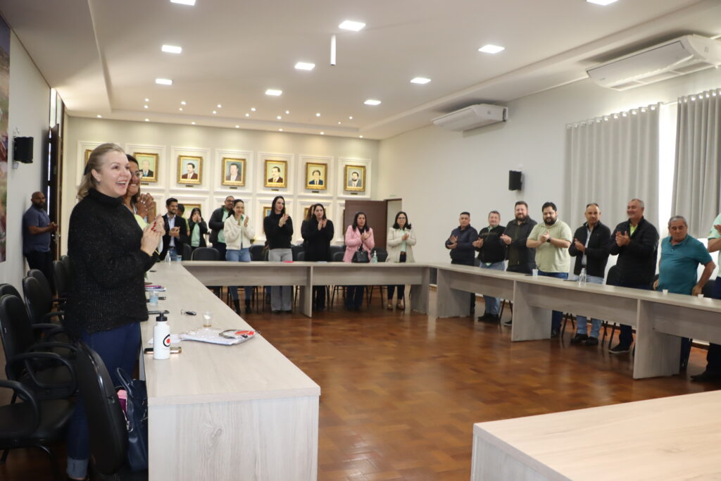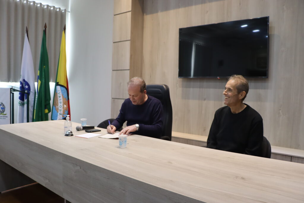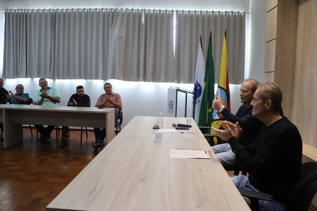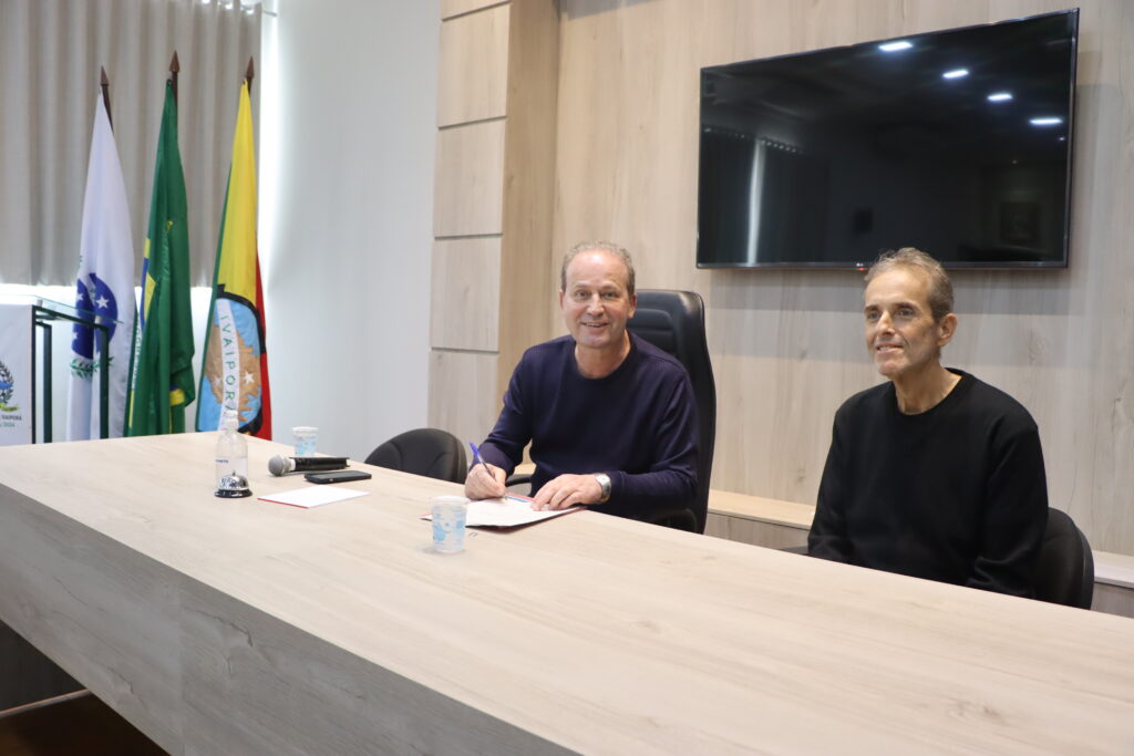 Após os discursos, Carlos Gil oficializou a transferência de poder, assinando o termo de posse, enquanto Marcelo Reis era aplaudido de pé – um ato de apoio e aprovação da liderança temporária.
