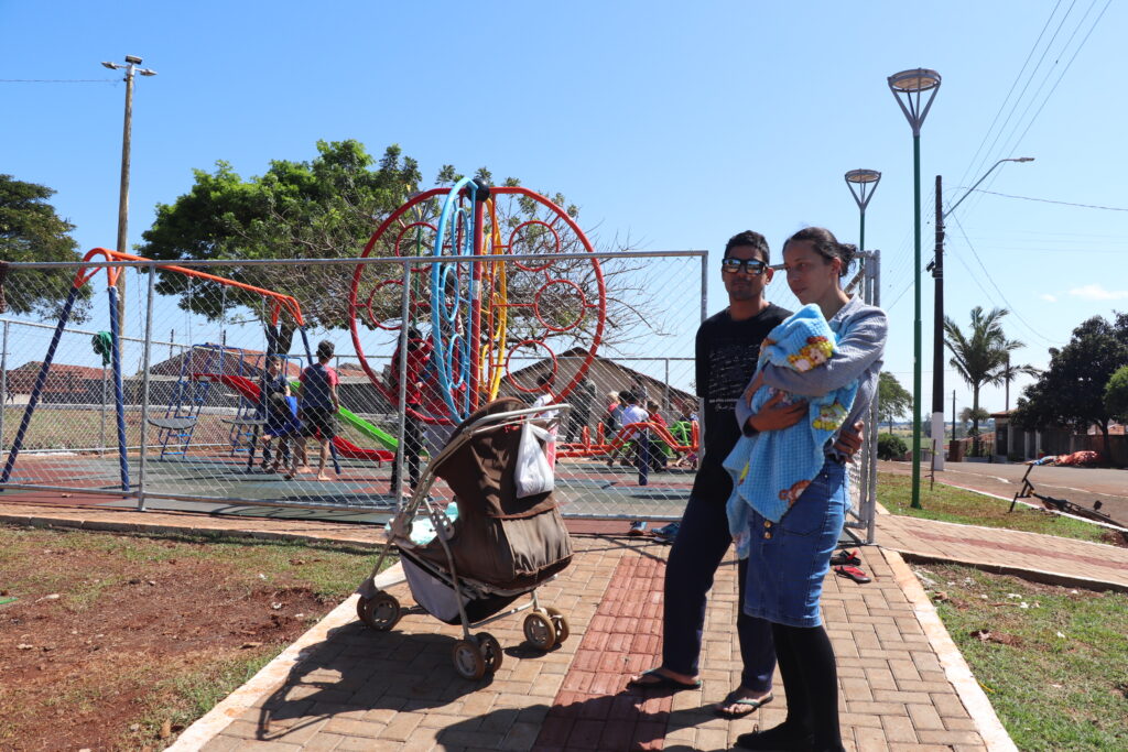 Daiane Santos, que reside no Jardim Nova Porã, foi passear na Praça Ozório Alves de Andrade com os filhos e o marido, neste domingo, dia 27. “O espaço ficou muito bom! Antes, não havia opção perto de casa para sair com as crianças”, observou a moradora.