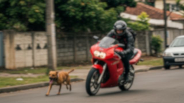 A vítima, que estava em sua motocicleta, relatou que o animal avançou e mordeu sua perna direita, rasgando a calça e causando um ferimento na região da canela.