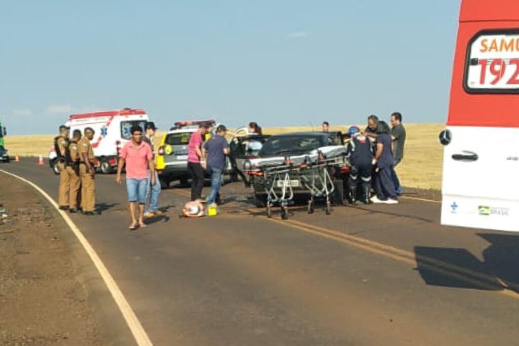 A batida frontal envolveu um Fiat Palio com placas de São João do Ivaí e um KIA vermelho com placas de Campo Mourão.