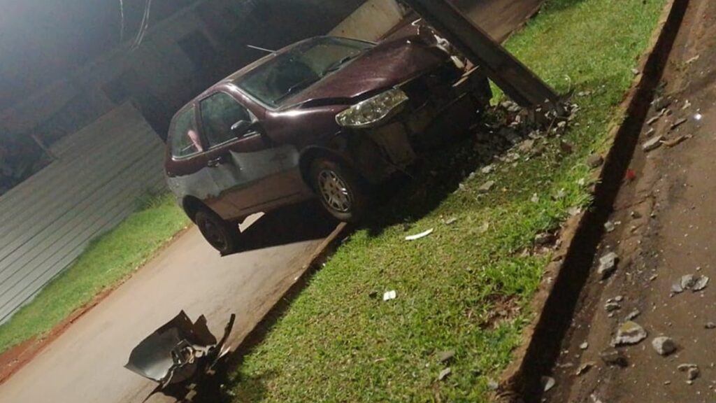 Nas imagens é possível ver o danos consideráveis tanto ao poste como no veículo.