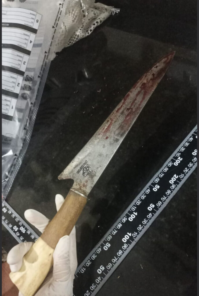 A Polícia Militar foi até a residência do casal, em Ivailândia, onde apreendeu uma faca com cabo de madeira e osso, com lâmina de 42 centímetros, que teria sido usada no crime, bem como um aparelho celular.