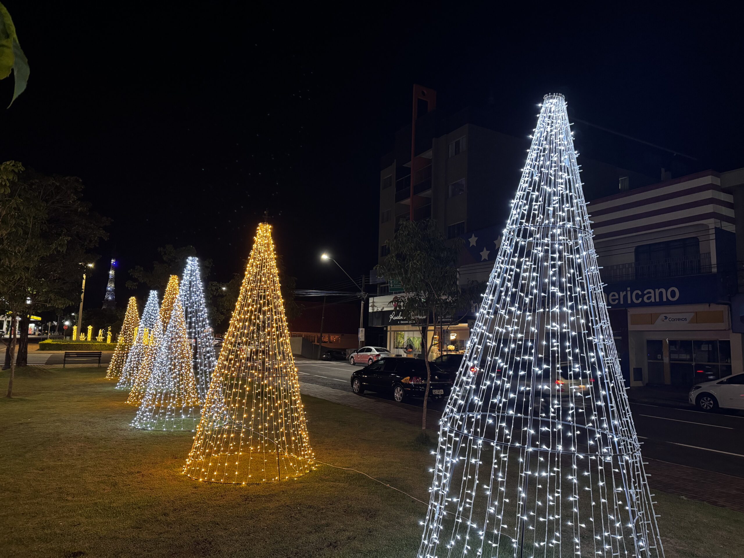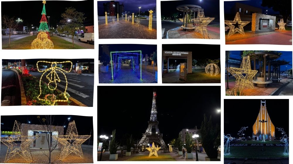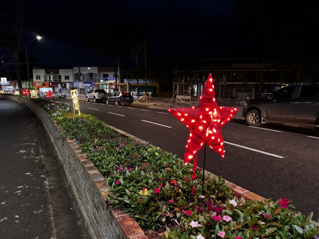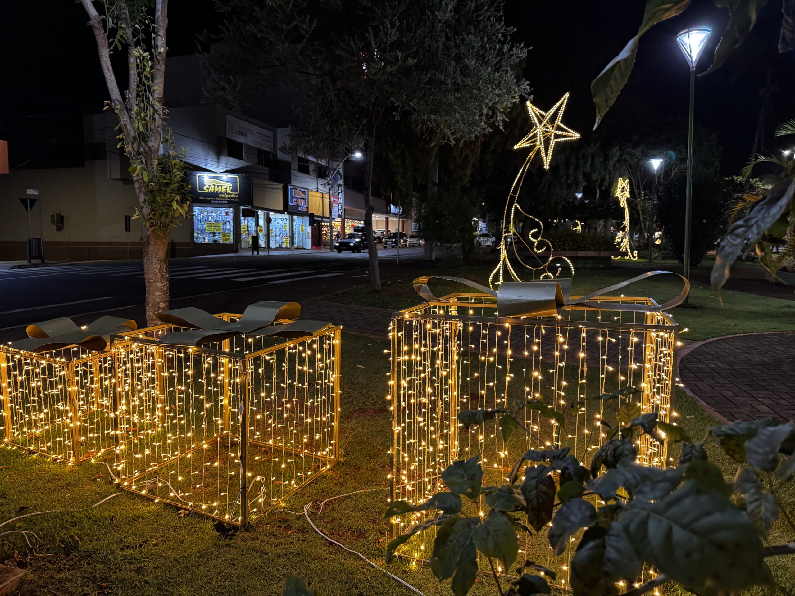 Este ano, o projeto foi ampliado e inclui também as praças das Paróquias Bom Jesus, Santíssima Mãe de Deus e Espírito Santo e o Terminal Rodoviário. Nos distritos do Alto Porã, Jacutinga e Santa Bárbara, a instalação será concluída nos próximos dias, garantindo que todo o município compartilhe da magia natalina.