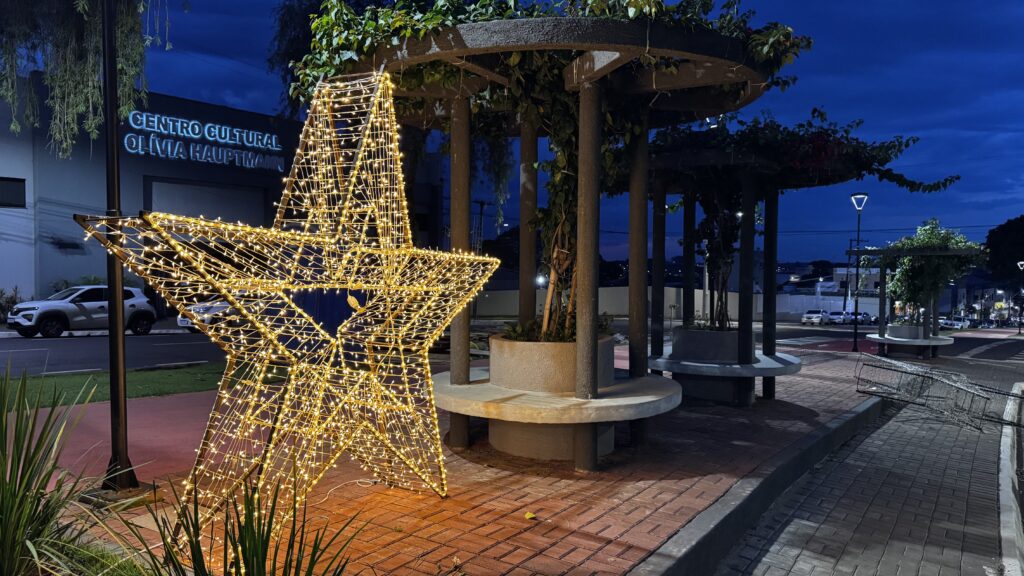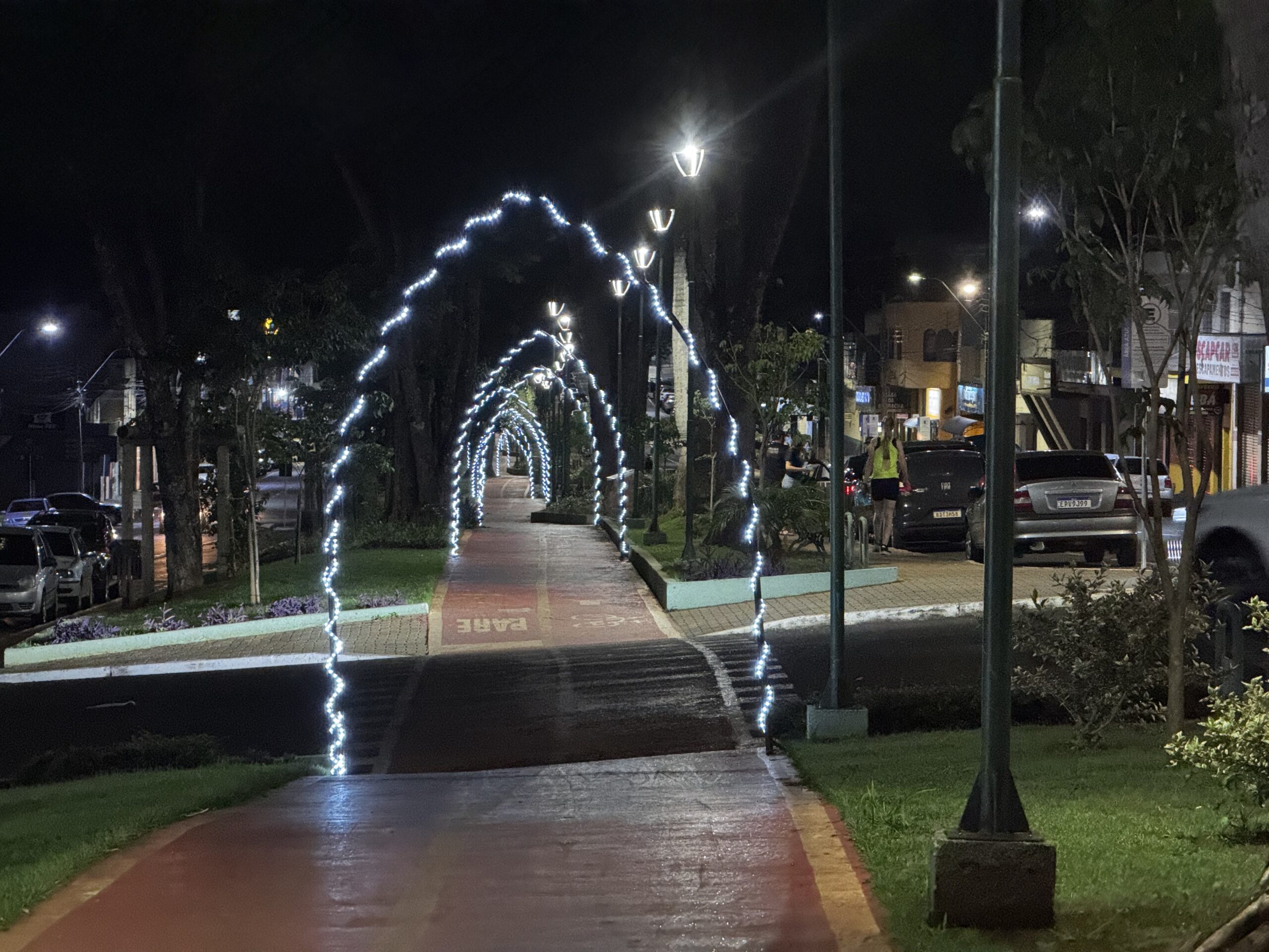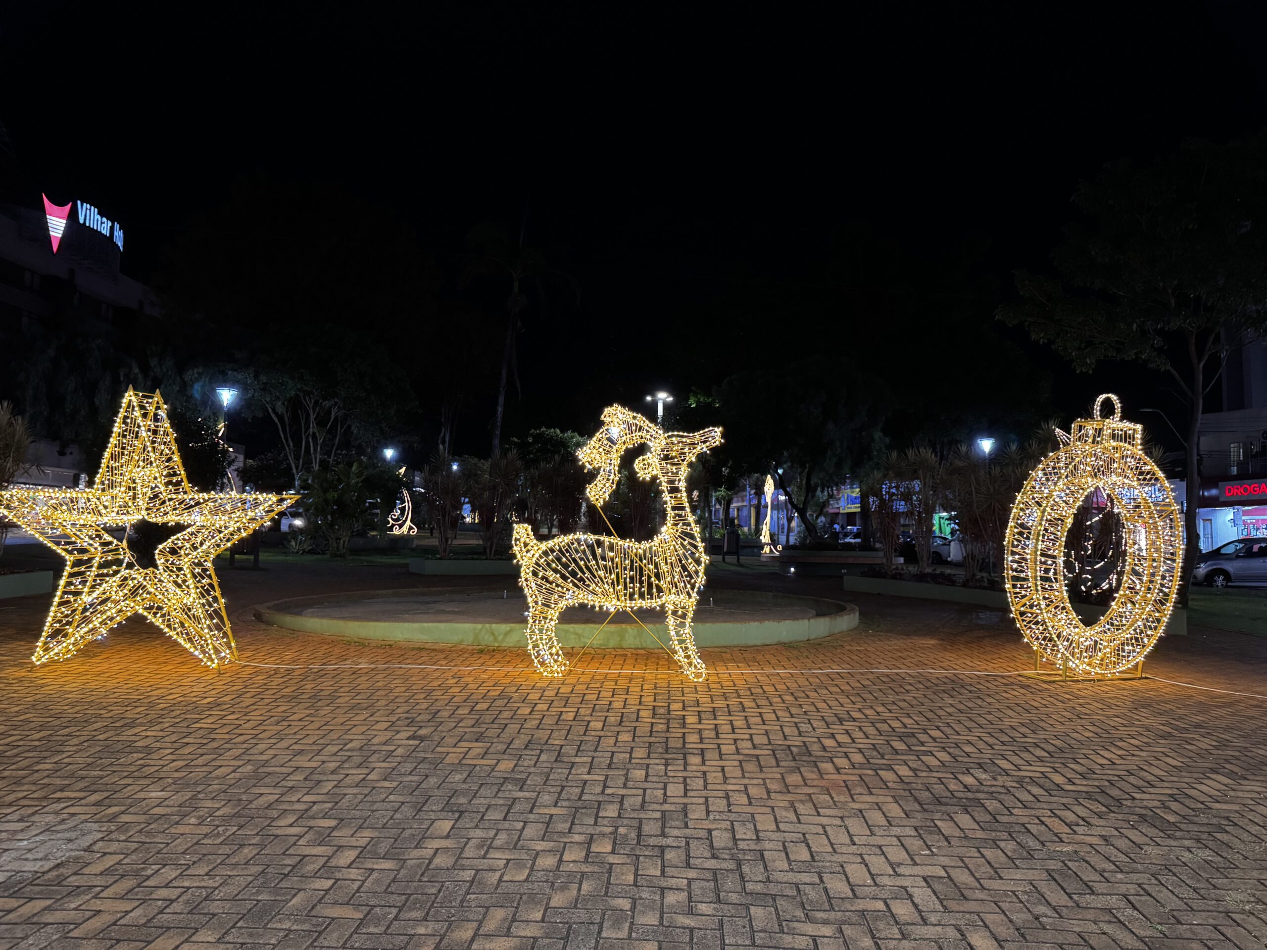 Este ano, o projeto foi ampliado e inclui também as praças das Paróquias Bom Jesus, Santíssima Mãe de Deus e Espírito Santo e o Terminal Rodoviário. Nos distritos do Alto Porã, Jacutinga e Santa Bárbara, a instalação será concluída nos próximos dias, garantindo que todo o município compartilhe da magia natalina.