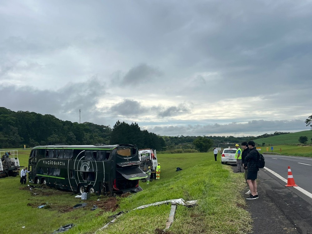Um grave acidente marcou a madrugada desta sexta-feira (29) na Rodovia Castello Branco, em Itatinga (SP). Um ônibus da Viação Garcia, com destino a São Paulo e partindo de Maringá (PR), tombou no quilômetro 208 da rodovia, por volta das 5h.