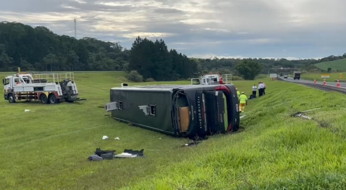 Um grave acidente marcou a madrugada desta sexta-feira (29) na Rodovia Castello Branco, em Itatinga (SP). Um ônibus da Viação Garcia, com destino a São Paulo e partindo de Maringá (PR), tombou no quilômetro 208 da rodovia, por volta das 5h.