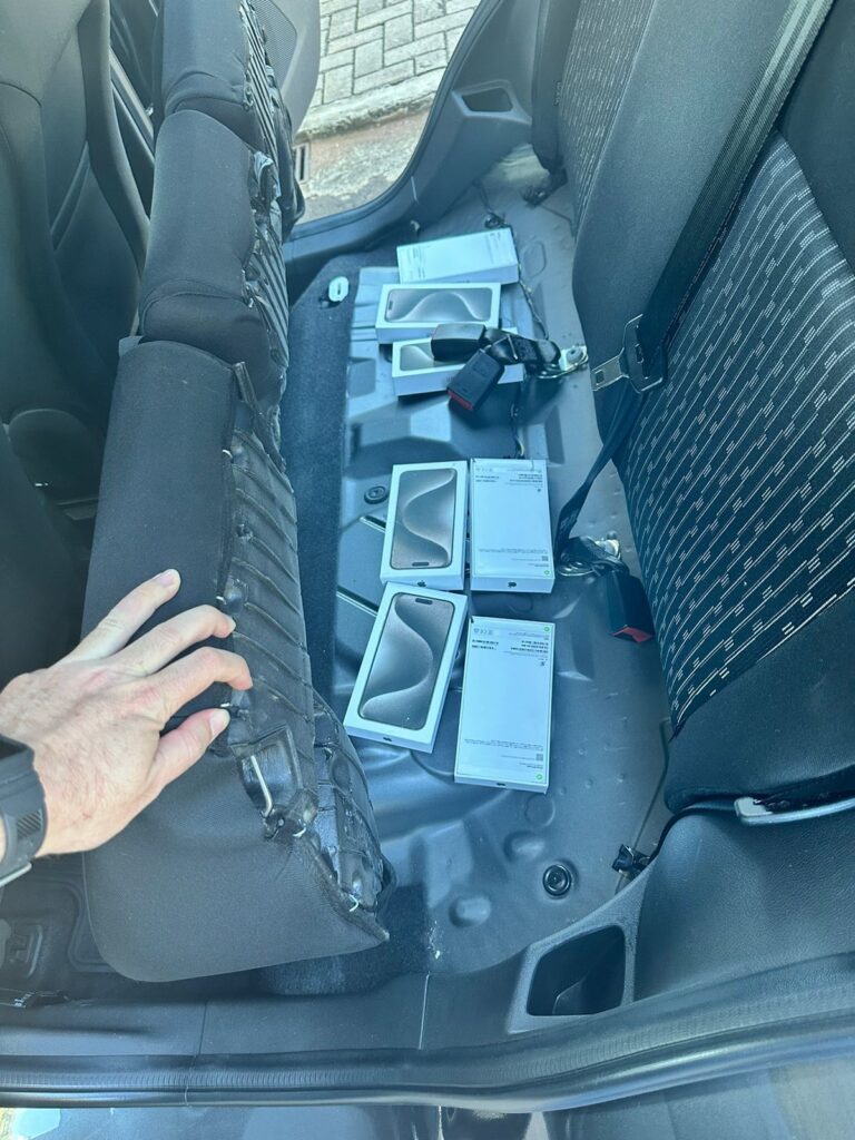 Todos os veículos transportavam cargas de contrabando e descaminho, incluindo caixas de cervejas, galões de azeite de uma marca expressamente proibida no Brasil, celulares e eletrônicos avaliados em 570 mil reais.