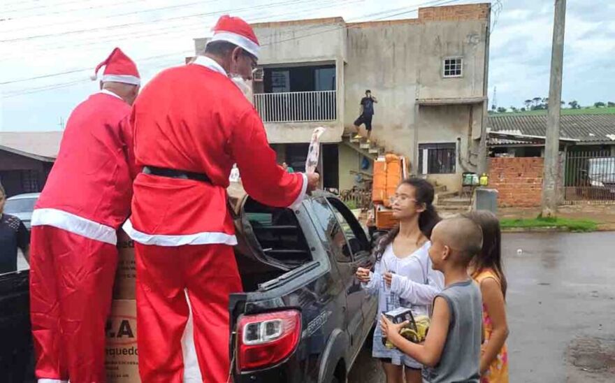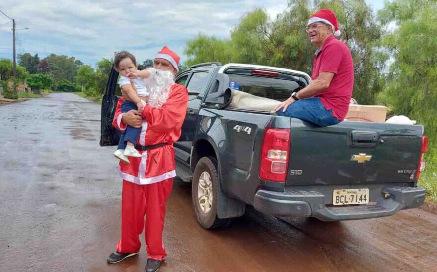 “É a primeira vez que entregamos os presentes com chuva. Até foi melhor, no ano passado o calor foi terrível. Com essa roupa de Papai-Noel, hoje está fresquinho. Também só temos a agradecer ao povo de Ivaiporã que nunca deixou de ajudar a gente”, enfatizou Louzada.