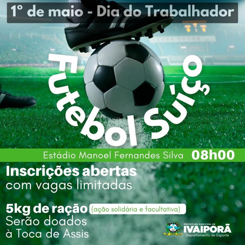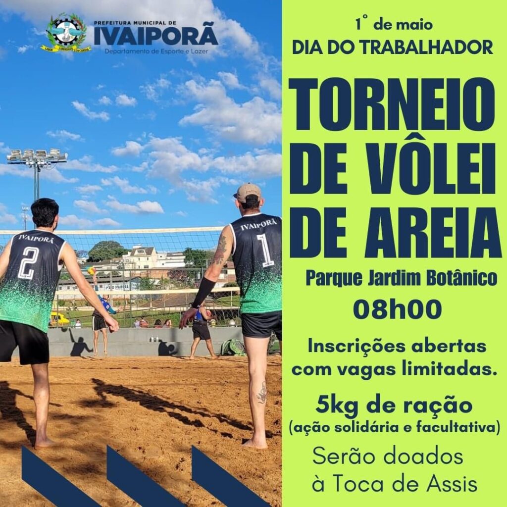 Em comemoração ao Dia do Trabalhador a Prefeitura Municipal de Ivaiporã, através da Diretoria Municipal de Esportes estará promovendo neste dia 1° de maio torneios esportivos de vôlei de areia e futebol suíço.