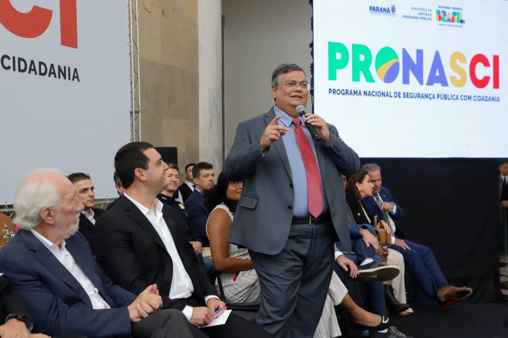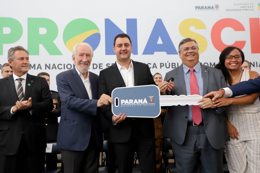 O Paraná recebeu nesta sexta-feira (14), do Ministério da Justiça e Segurança Pública, 50 viaturas e uma série de armas, munições e equipamentos para reforçar o enfrentamento à violência contra a mulher e equipar toda a área de segurança pública do Estado. Os veículos e equipamentos foram entregues ao governador Carlos Massa Ratinho Junior pelo ministro Flávio Dino, em cerimônia no Palácio Iguaçu, e fazem parte do Programa Nacional de Segurança com Cidadania (Pronasci II).