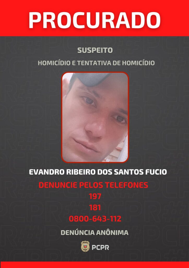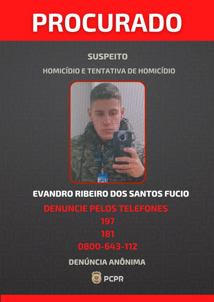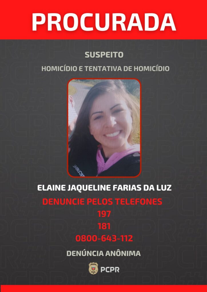 A Polícia Civil do Paraná (PCPR) divulga imagens de um homem, de 22 anos, e uma mulher, de 27, suspeitos do homicídio de Kauan Colaço Santos Leite e da tentativa de homicídio de Eduarda Dama dos Santos, ocorrido no dia 17 de maio, no bairro Santa Cândida, em Curitiba.