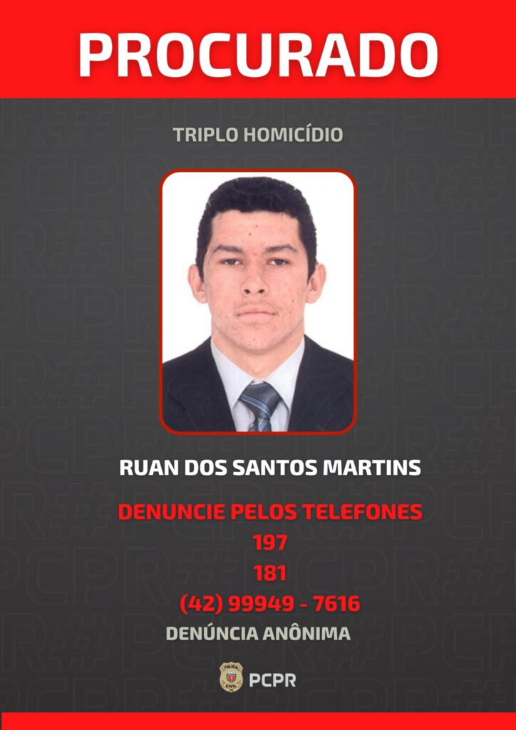 DENÚNCIAS- A PCPR solicita a colaboração da população com informações que auxiliem na localização do procurado. As denúncias podem ser feitas de forma anônima através dos telefones 197, da PCPR, 181, do Disque-Denúncia ou (42) 99949-7616.