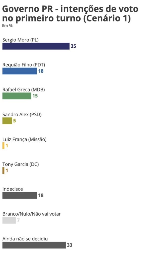 A Quaest perguntou aos eleitores sobre o peso do apoio do atual governador, Ratinho Junior (PSD), em sua escolha de voto. Ratinho desistiu de concorrer à Presidência da República para concluir o mandato e tentar emplacar seu sucessor.