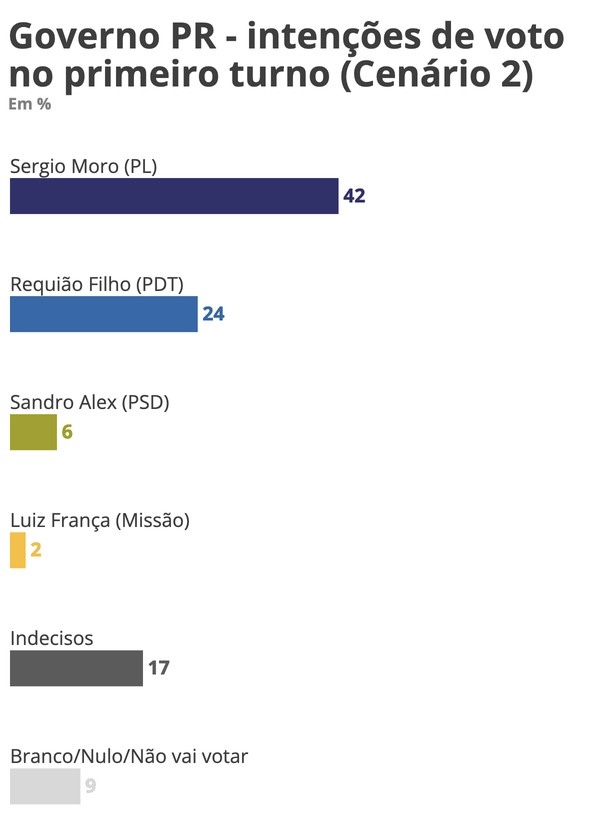 A Quaest fez também quatro simulações de 2º turno, e todos incluem o senador Sergio Moro (PL) contra diferentes adversários.