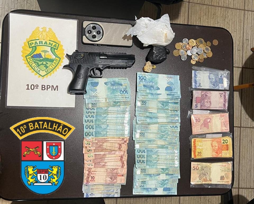 Califórnia, PR – A Polícia Militar (PM) prendeu um homem por tráfico de drogas e associação ao tráfico na tarde desta sexta-feira (15), na Rua Angélica Tais Fraga, no bairro Violeta. A ação resultou na apreensão de crack, cocaína e mais de R$ 8 mil em dinheiro.