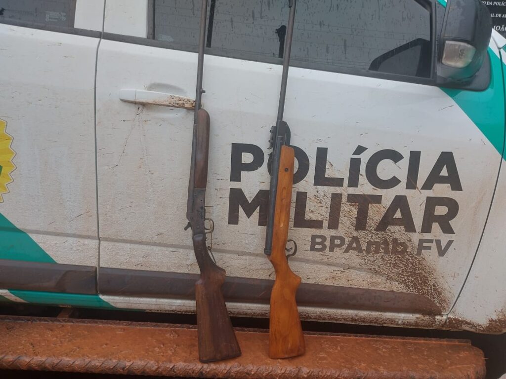 Na lista de apreendidos estão: uma espingarda calibre .36, uma carabina calibre .22, 147 munições de calibres diversos, aviamentos para recarga de munições, 800 metros de redes de pesca de malhas diversas, uma tarrafa de malha 9′ e 200 metros de espinhel.