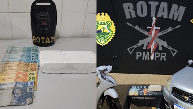 Ivaiporã, PR – A equipe da Ronda Ostensivas Tático Móvel (ROTAM) da Polícia Militar (PM) prendeu três homens por tráfico de drogas e associação criminosa na noite deste sábado (16), por volta das 21h05, na Avenida Brasil. A ação resultou na apreensão de mais de 1 quilo de cocaína.