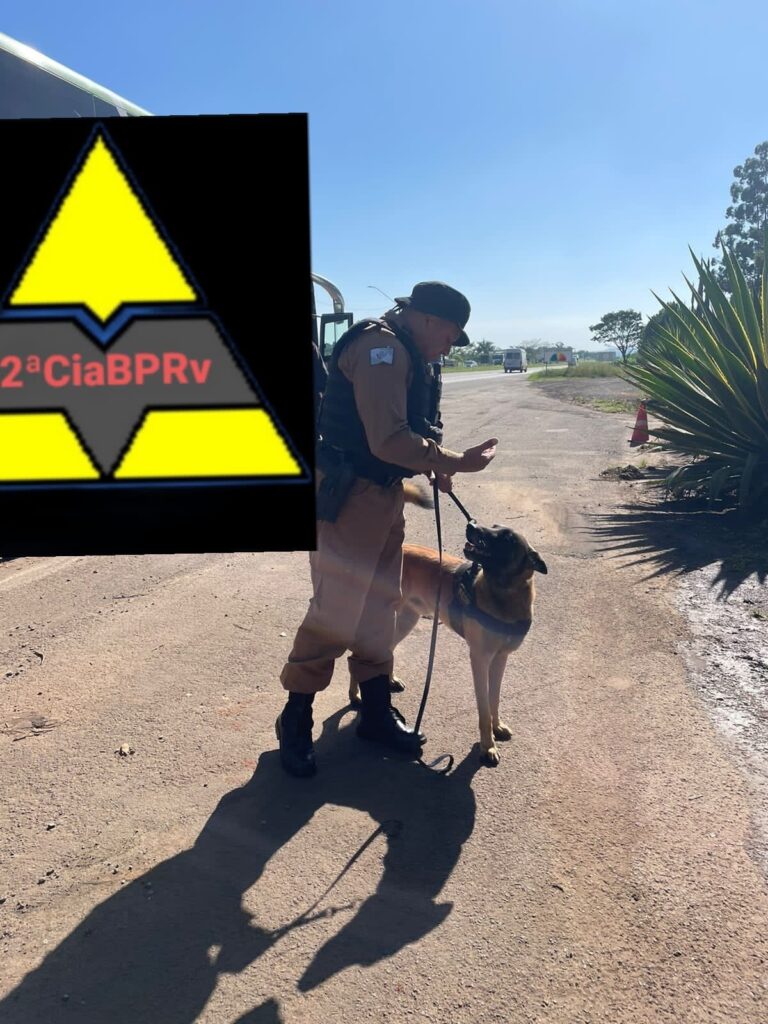 Durante realização da Operação Safra em frente ao PRv Rolândia, em conjunto com o Canil da 7ª Cia Ind. E Adapar, abordamos um ônibus de linha regular, que cumpria o itinerário Maringá a Porto Alegre.