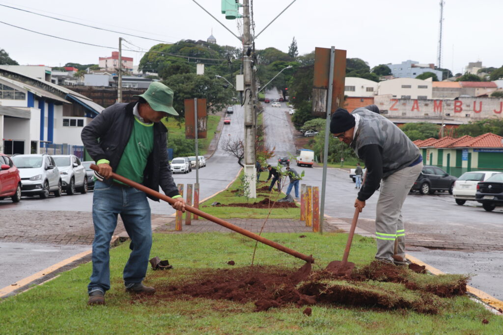 Nesta segunda-feira, 27 de maio, a Prefeitura de Ivaiporã deu continuidade ao processo sustentabilidade ao plantar 98 árvores nas Avenidas Aparício Cardoso Bitencourt e Osvaldo Cruz. A ação é realizada pela equipe da Secretaria Municipal de Meio Ambiente, sob a coordenação do chefe de Serviços Urbanos, Jeferson Teixeira Palopoli.