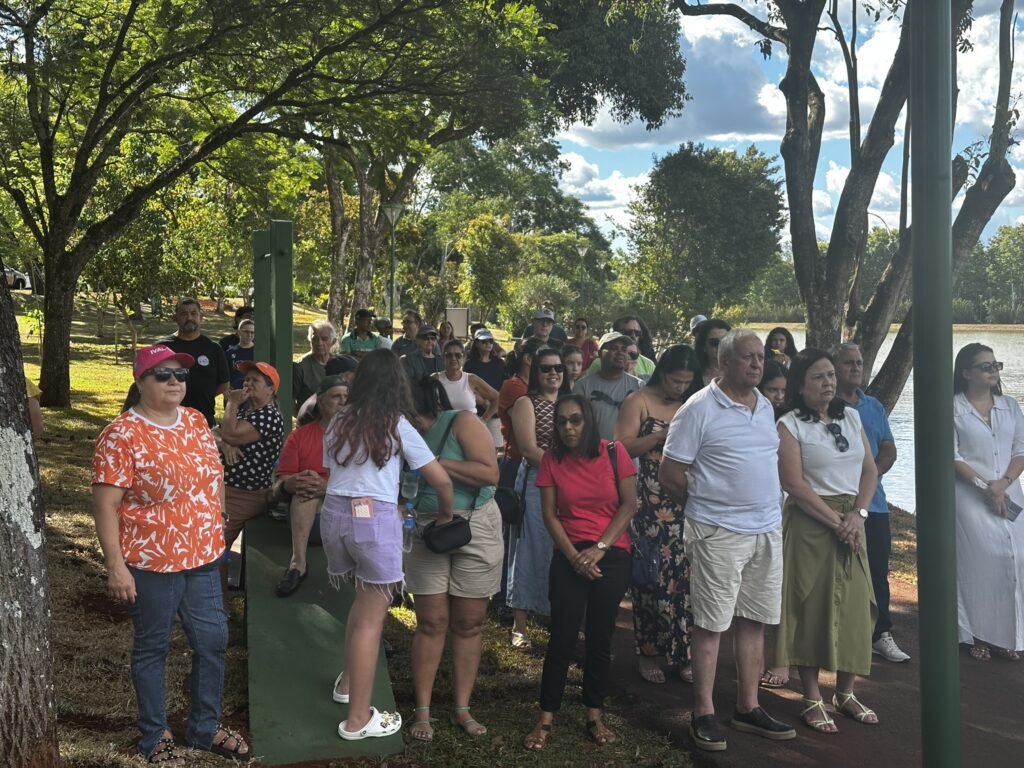 A vice-prefeita Gertrudes Bernardy relembrou momentos pessoais no local, destacando o valor afetivo do parque para as famílias. “Lembro-me de trazer meu filho pequeno aqui. Ver este espaço agora, com academia ao ar livre e toda essa infraestrutura, é um orgulho para todos nós”, declarou.