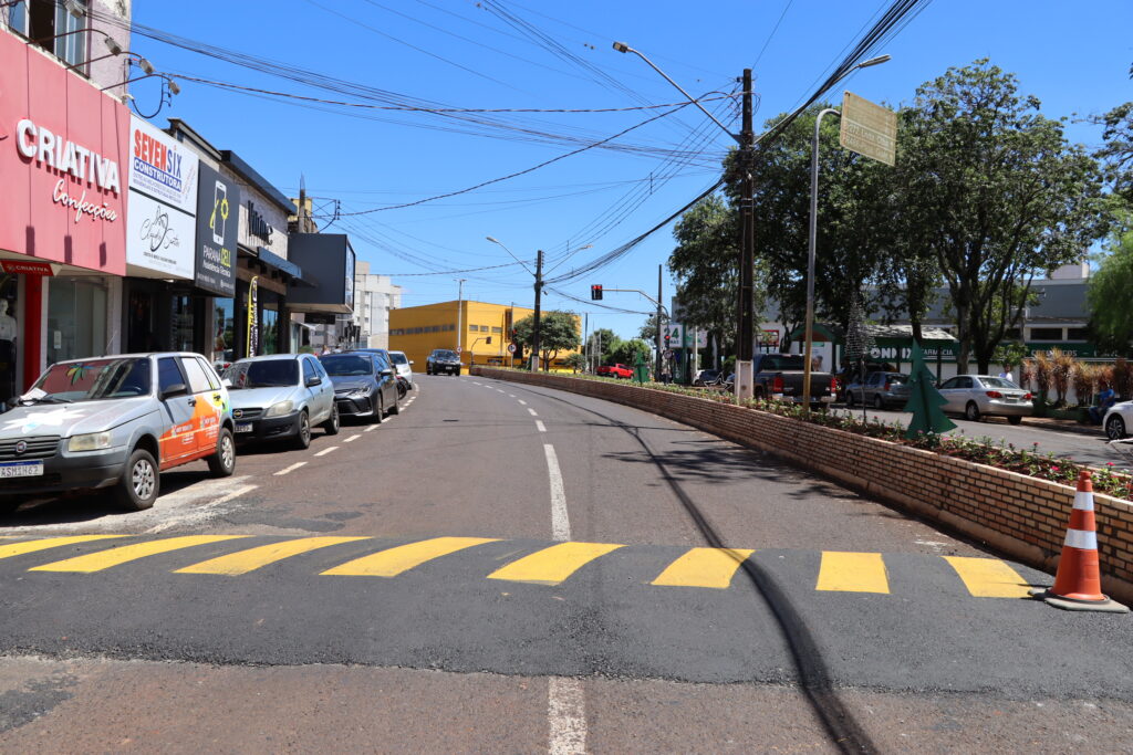 Prefeitura de Ivaiporã finaliza faixas elevadas, lombadas e floreiras na Avenida Paraná