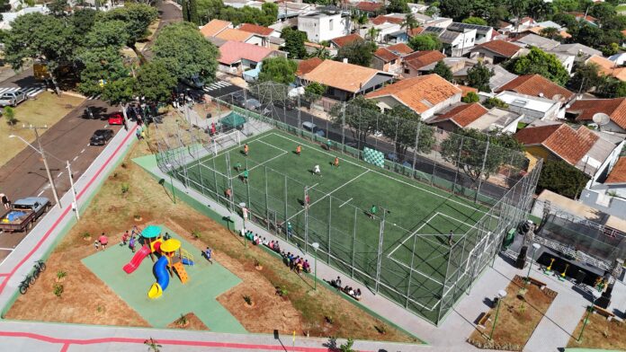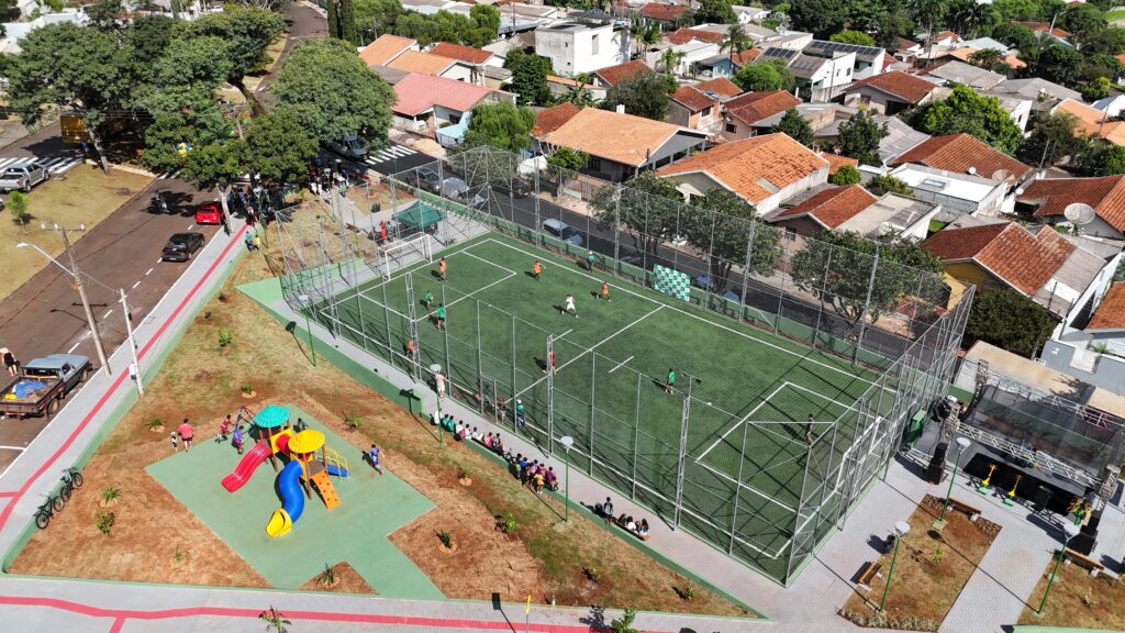 Foi visando à prática esportiva e o bem-estar daqueles que residem no Jardim Espírito Santo, que a Prefeitura de Ivaiporã inaugurou o Meu Campinho, no sábado, dia 8 de fevereiro, com campo sintético, playground e academia ao ar livre – além de recape asfáltico nas ruas laterais, valorizando residências e proporcionando melhor mobilidade.