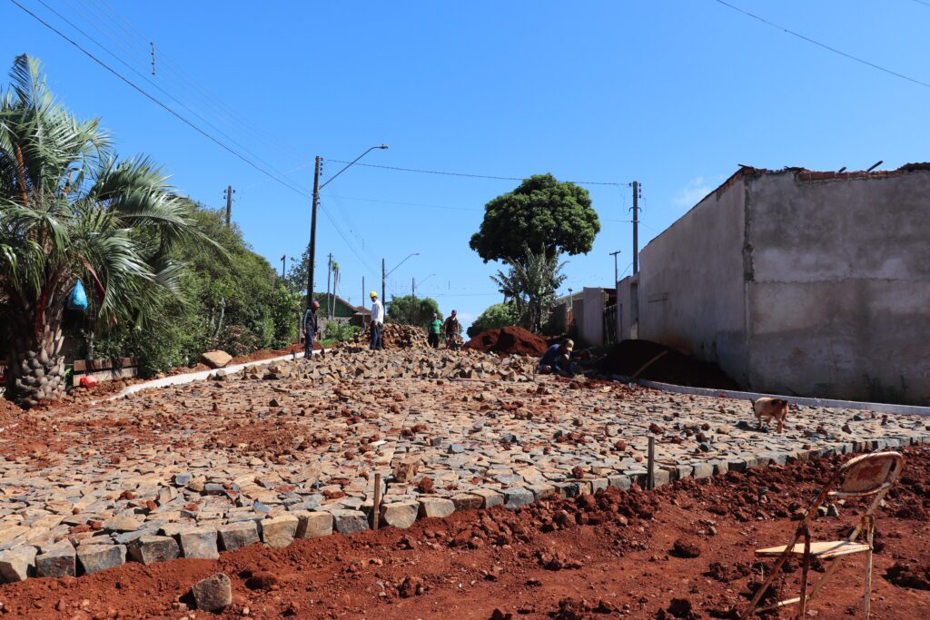 Ruas do distrito do Jacutinga são pavimentadas pela Prefeitura de Ivaiporã com pedra e asfalto.