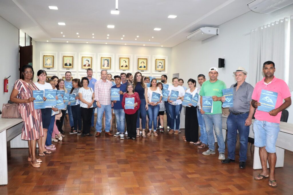 “Agradeço ao prefeito Carlos Gil e ao vice-prefeito Marcelo Reis pela oportunidade, e sou muito grata ao titular do Cartório de Registro de Imóveis, Marco Antônio Pedrazzi Valentini, pela atenção que nos deu durante o decorrer do processo de Regularização Fundiária, e honrada por testemunhar a felicidade de 30 moradores da Vila São Sebastião”, declarou Carine Silva, informando que mais 16 moradores receberão o documento.