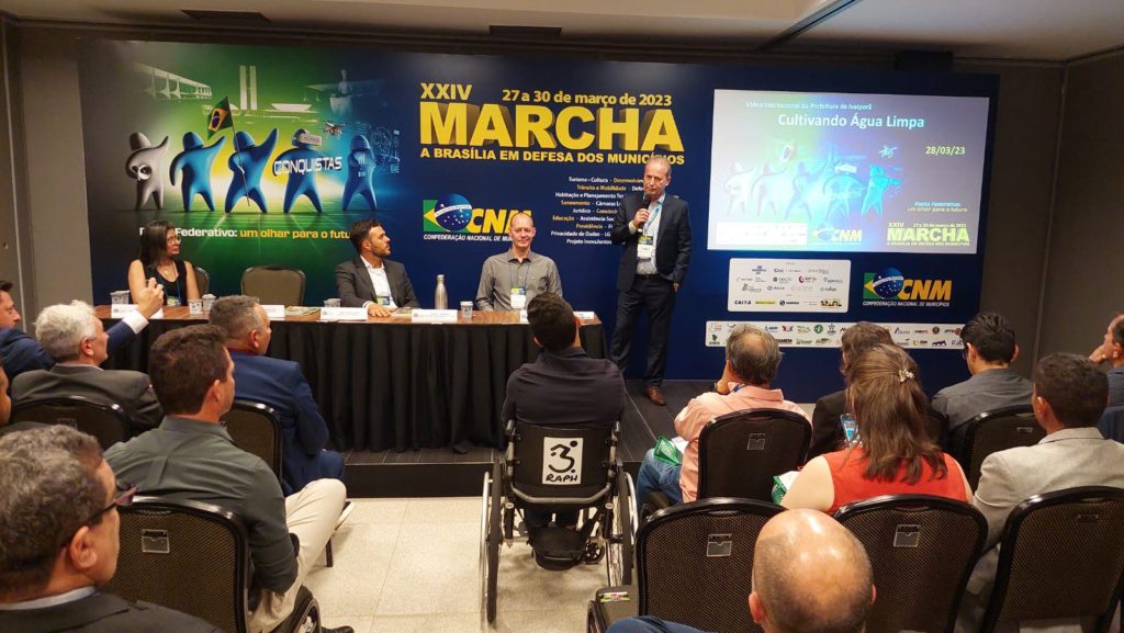 Nesta terça-feira, dia 28 de março, o prefeito de Ivaiporã, Carlos Gil, apresentou o programa Cultivando Água Limpa, em Brasília, para líderes políticos e ambientais do Brasil. O convite foi feito pela Confederação Nacional de Municípios (CNM), organizadora da Marcha a Brasília, que reúne mais de 13 mil inscritos.