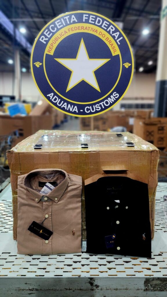 Destaque também para a apreensão de “fardos” contendo blusas, tênis e camisetas frutos de contrafação (falsificação ) de marcas internacionais.