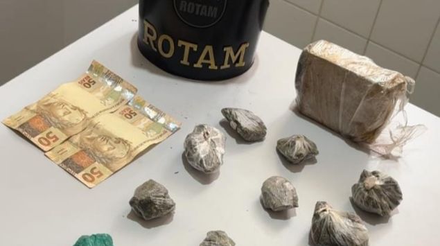Na revista pessoal, foram encontradas com o homem 266 gramas de maconha, R$ 100,00 em dinheiro e outros objetos de procedência duvidosa.