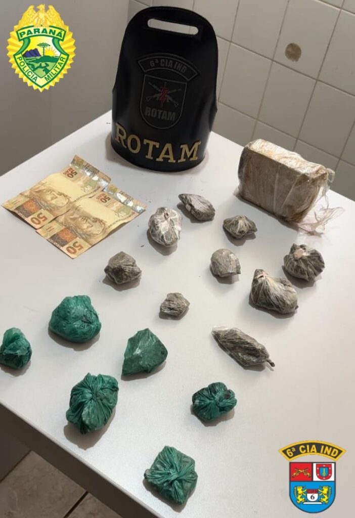 Na tarde de quarta-feira (10), por volta das 14h30, a equipe da ROTAM da Polícia Militar (PM) prendeu em flagrante um homem de 26 anos suspeito de tráfico de drogas na Rua Três Marias, na Vila Santa Terezinha, em Ivaiporã.