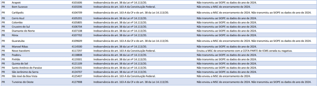 A informação foi divulgada em 21 de julho pelo Fundo Nacional de Desenvolvimento da Educação (FNDE), e o Tribunal de Contas do Estado do Paraná (TCE-PR) tem acompanhado de perto a situação, alertando os municípios pendentes. O trabalho de fiscalização tem surtido efeito: o número de cidades paranaenses com pendências caiu de 115 em abril para os atuais 18.