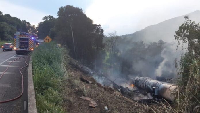 A PRF (Polícia Rodoviária Federal) esteve no local e informa que, conforme levantamento, o motorista perdeu o controle do veículo em uma curva, o que causou o tombamento. Na sequência, a carreta, que transportava álcool, saiu da pista e pegou fogo.