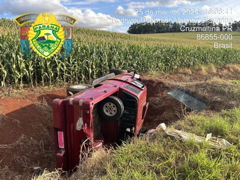Um acidente envolvendo uma caminhonete Chevrolet D-20 deixou três pessoas feridas na tarde de sábado (25), por volta das 16h25, na PR-453, entre o município de Cruzmaltina e o trevo da PR-272 sentido a Borrazópolis.