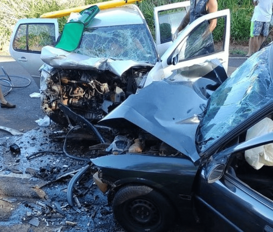 Os dois veículos bateram de frente no fim da tarde deste domingo.