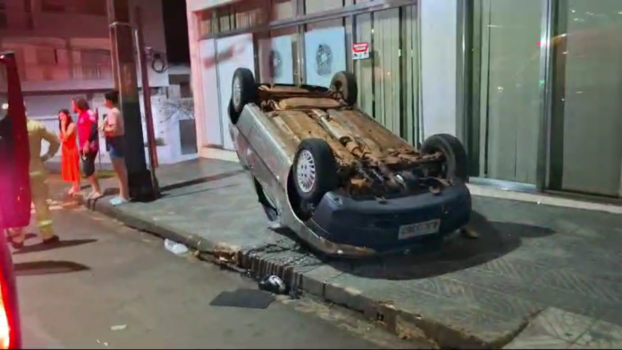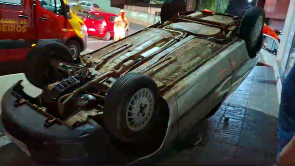 Ao chegar ao local, a equipe policial encontrou um veículo Fiat Palio tombado com as rodas para cima. O condutor do veículo havia evadido-se do local antes da chegada das autoridades.