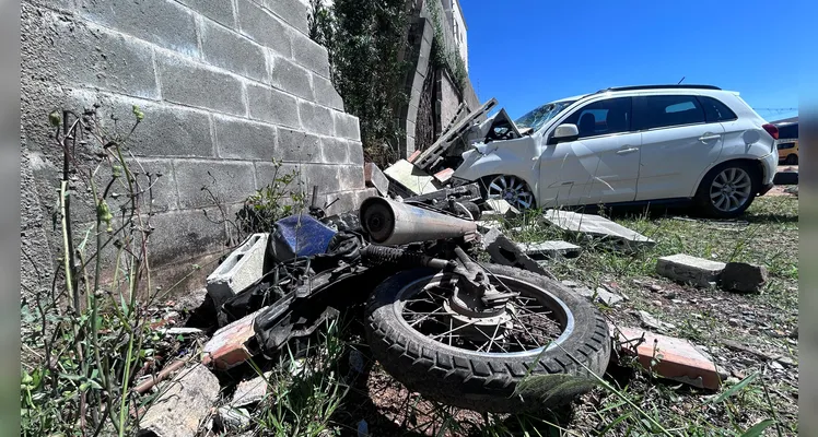 Fotos feitas pela equipe do Portal parceiro aRede no local do acidente mostram que a parte frontal do Mitsubishi ASX ficou destruída – a motocicleta arremessada também foi danificada. Parte do muro do condomínio também caiu por conta da batida.